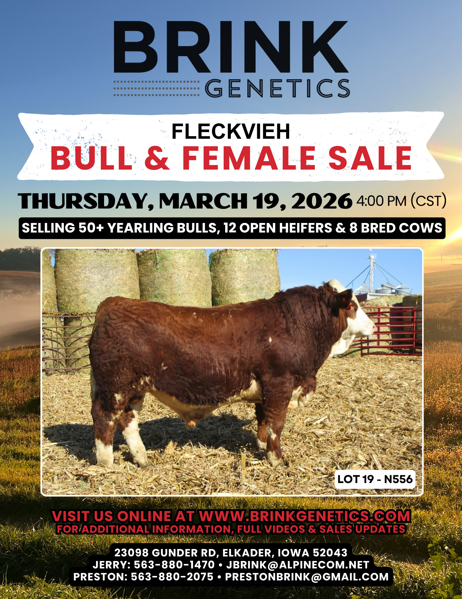 BULL & FEMALE SALE MARCH 19TH, 2026 (4:00 PM CST) CLICK TO VIEW 2026 BULL SALE OFFERING CLICK TO VIEW 2026 COW & HEIFER SALE OFFERING CLICK TO VIEW CATALOG NEW THIS YEAR - ONLINE AUCTION