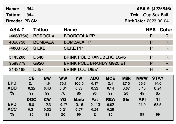 With Brandberg and Bombala, new German bulls, his EPD’s are inaccurate.