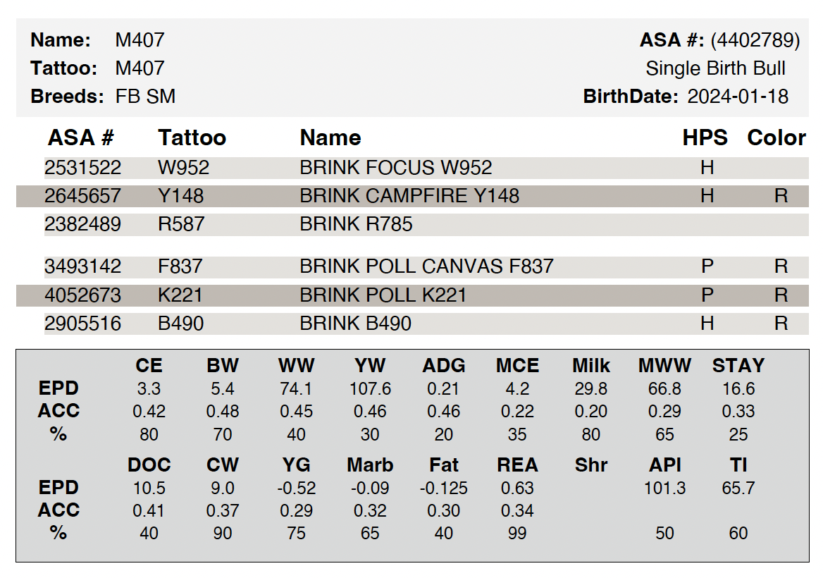 Campfire son out of 1st calf heifer with length and muscle. Great grandmother is full sibling to Ambrose.