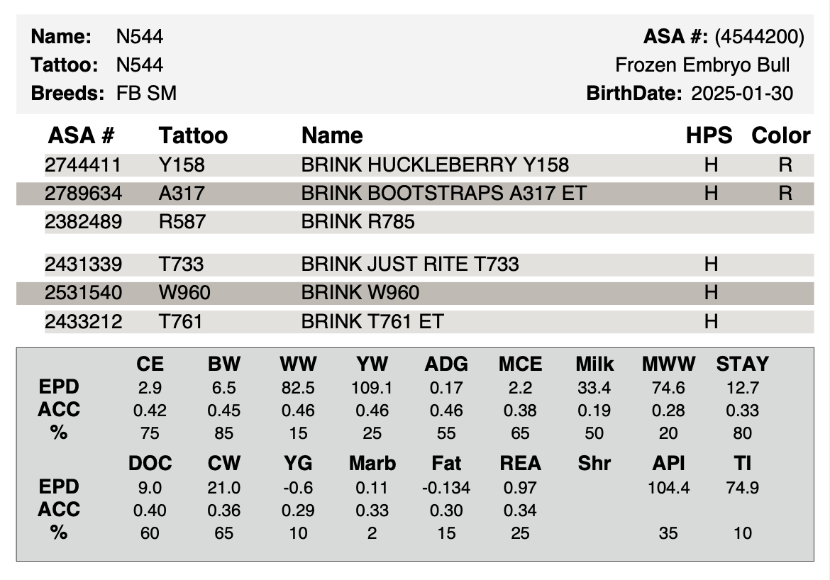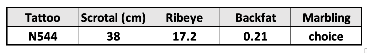 He is stout and three dimensional with a big expandable rib cage. Dam W960 produced till she was 16. 544 is also full sibling to herd sire Skylight. 544 ranks in the top 5 percent on his TI index.