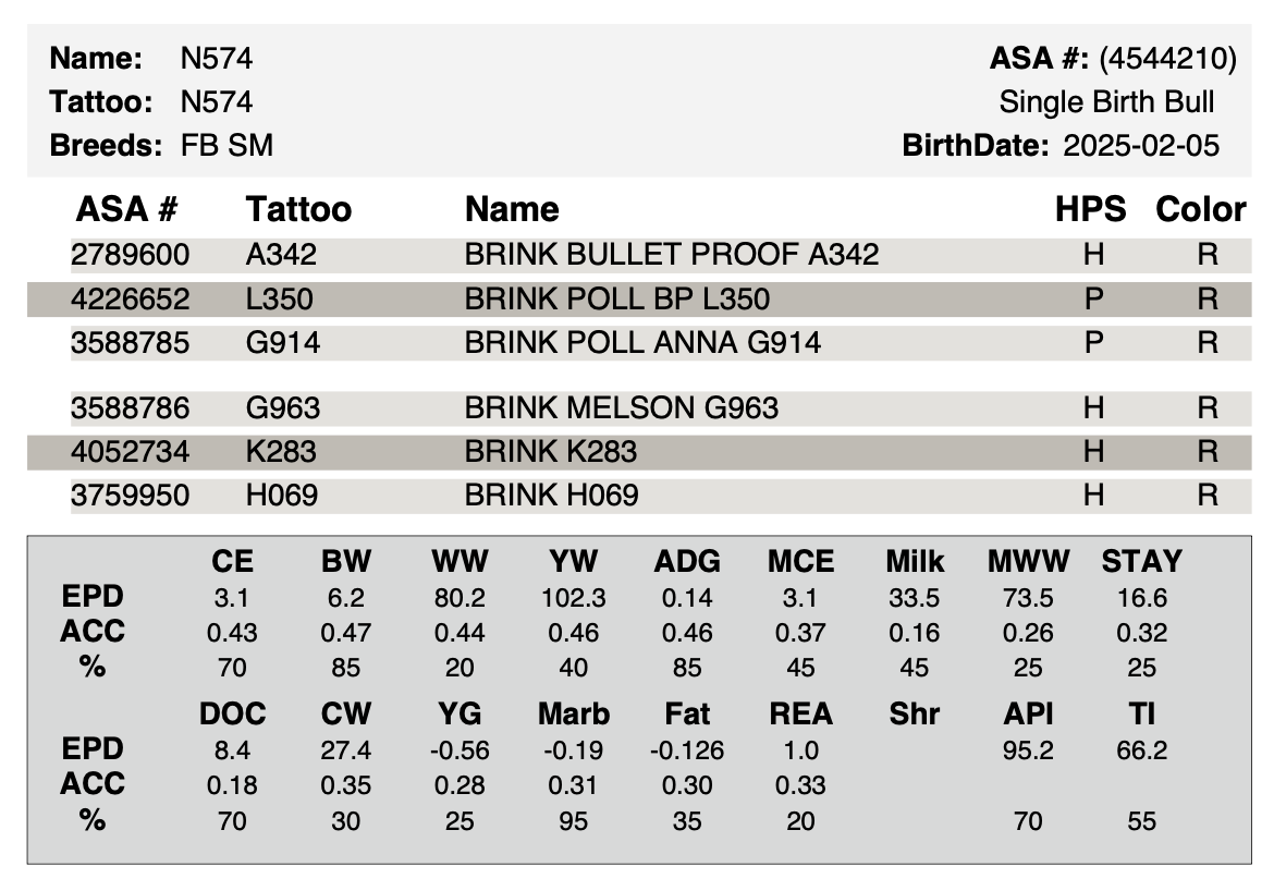 Extra long and smooth with top performance. Strong maternal 2nd calf heifer going back to the 241 cow family.