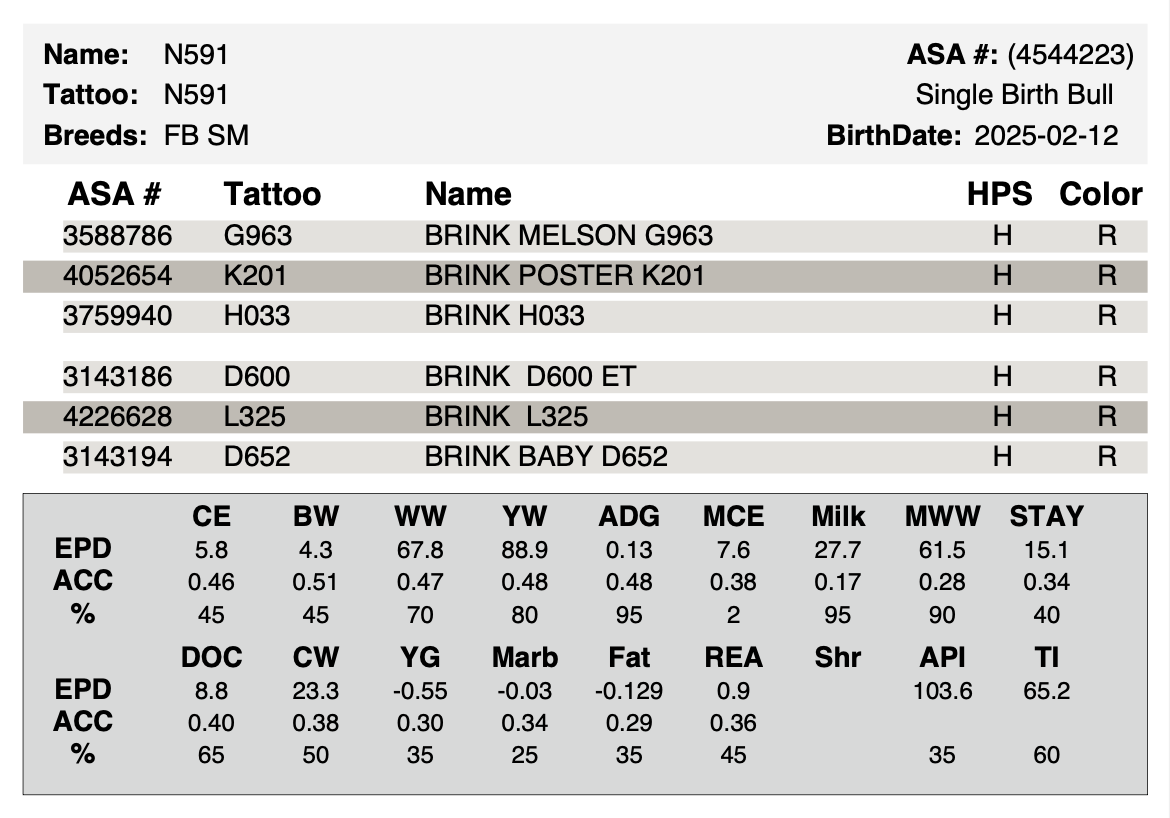 Poster son from a 1st calf heifer L325. This guy can be a candidate for heifer use. A loose structured free moving bull with dimension.