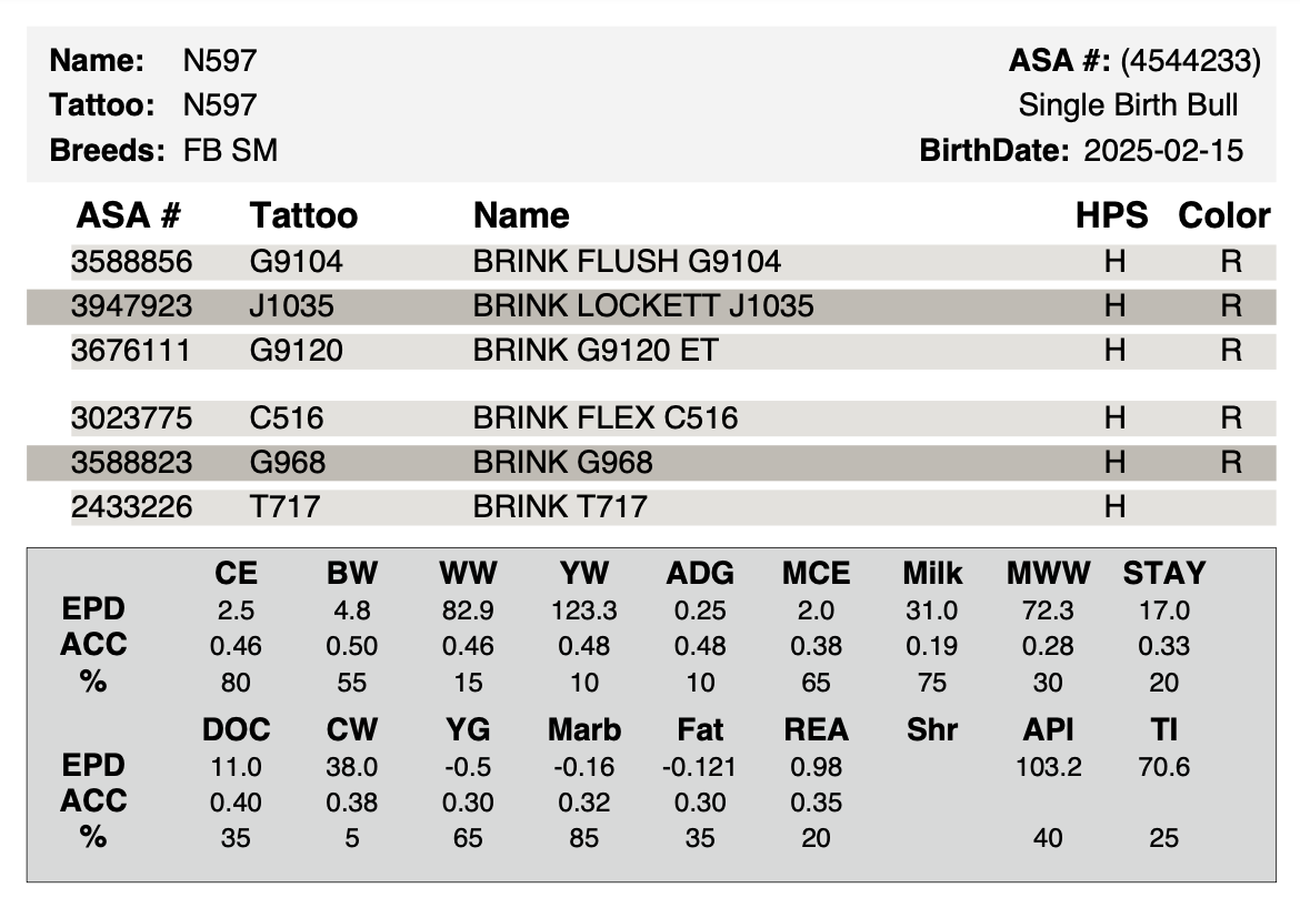 From the old 717 cow family noted for lighter birth weights for heifer use. This bull shows excellent front end smoothness. Being out of Lockett you get added performance in this guy with a low BW.