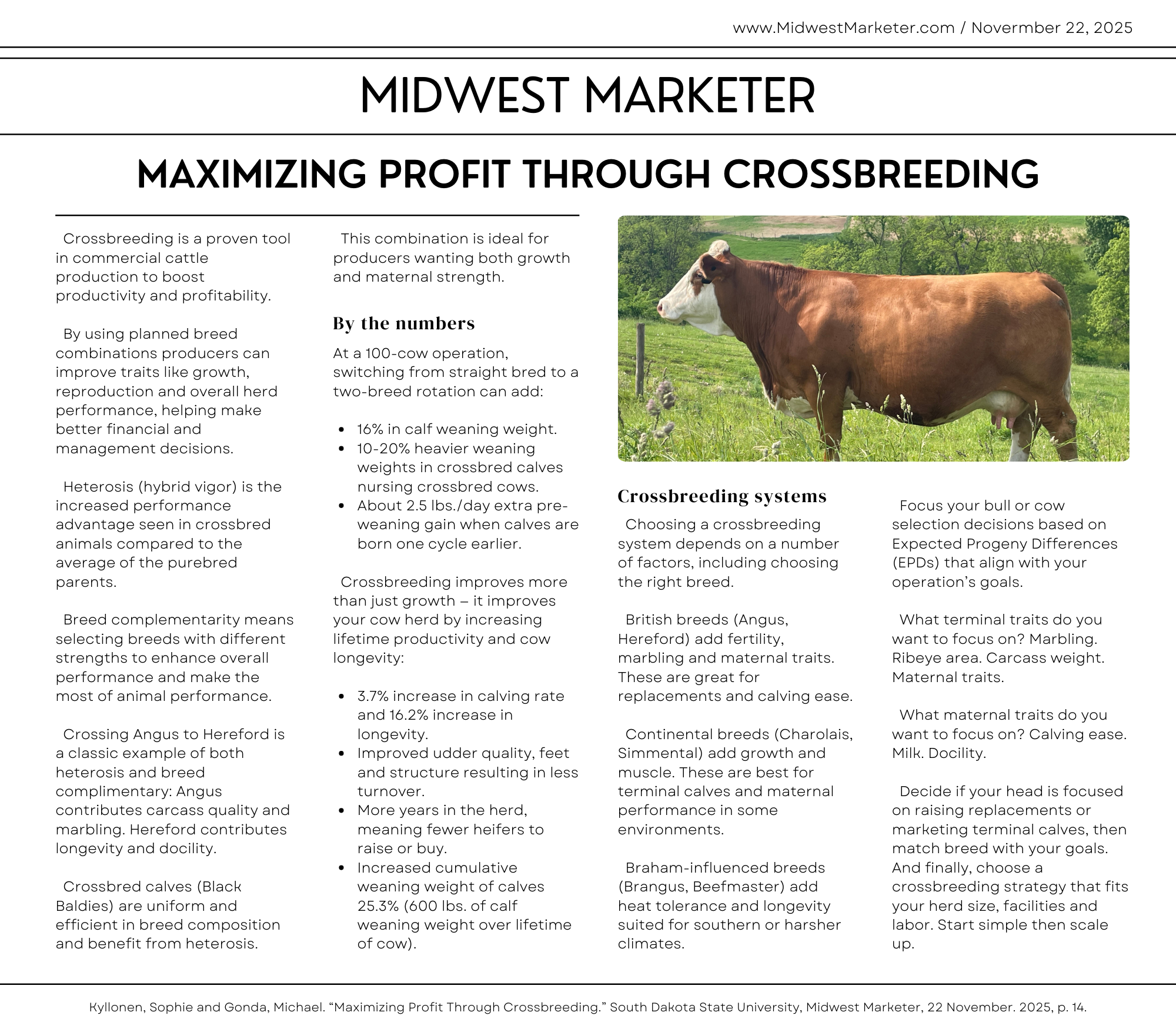 We are very optimistic about Fleckviehs and what they have to offer to a practical breeding program geared towards the commercial man's needs. Well-bred pure line genetics generate more heterosis and offspring uniformity.