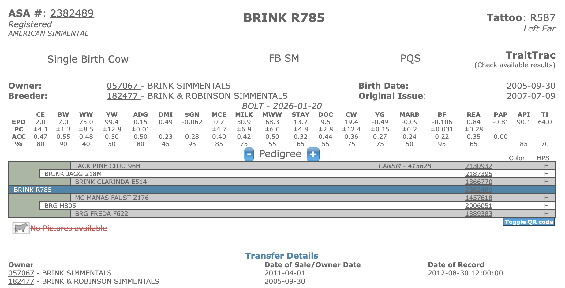 FOUNDATION FEMALES Brink R785 ASA#: 2382489Dam of Herdsire Brink Campfire Y148Dam of Herdsire Bulletproof A342Dam of Herdsire Brink Bootstraps A317Dam of Herdsire Brink B485Dam of Herdsire Brink F881 Dam of Herdsire Brink Campfire Y148 Dam of Herdsire Bulletproof A342 Dam of Herdsire Brink Bootstraps A317 Dam of Herdsire Brink B485