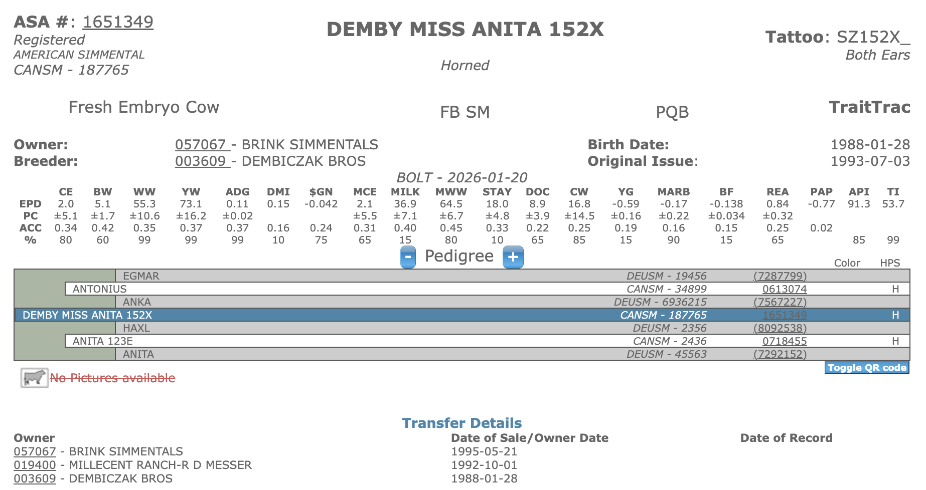 Anita is the Foundation Cow of Herdsire Brink Romeo N338