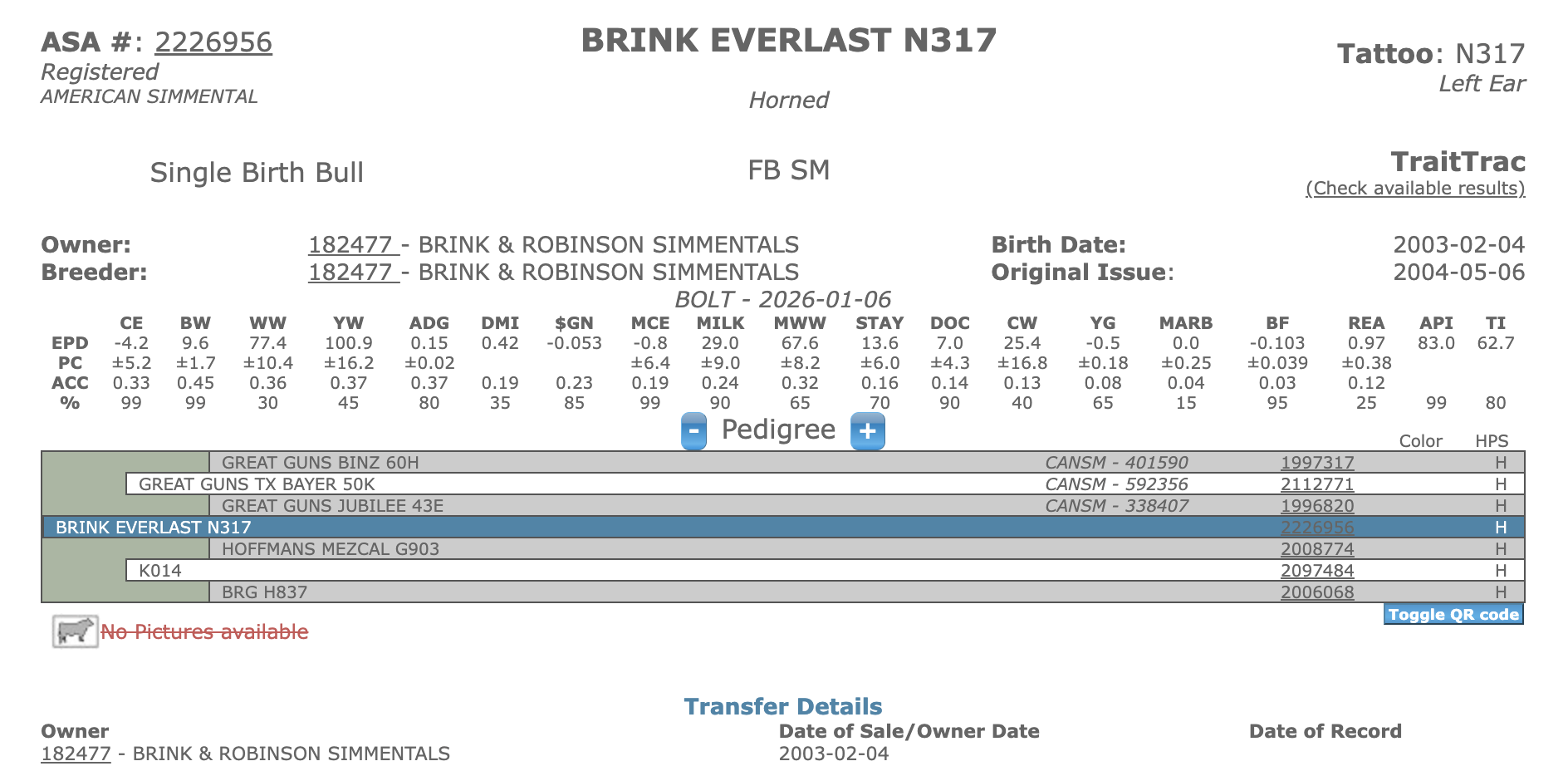 The foundation cows of his sire and dam are full sisters.