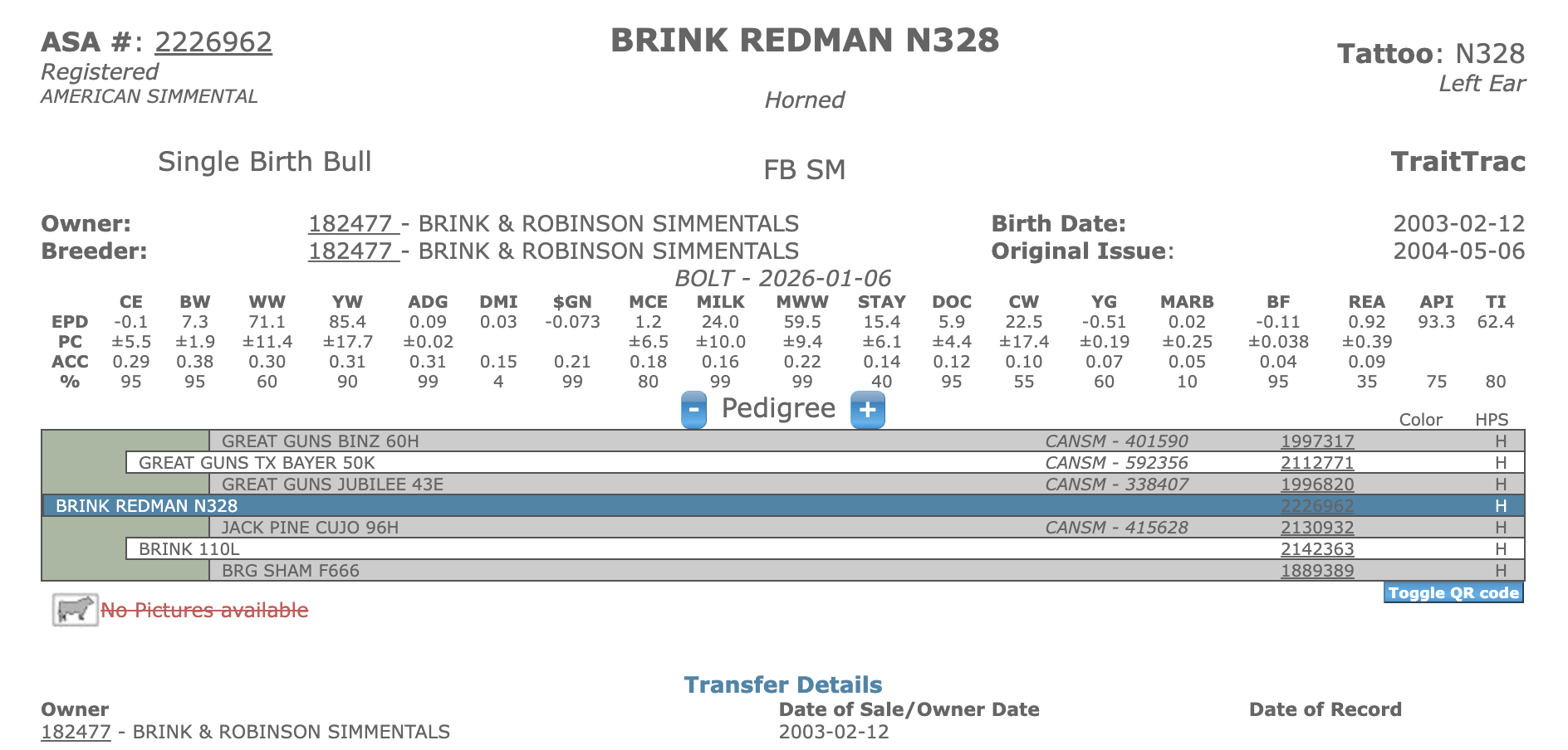 He is out of a first calf heifer by Cujo.